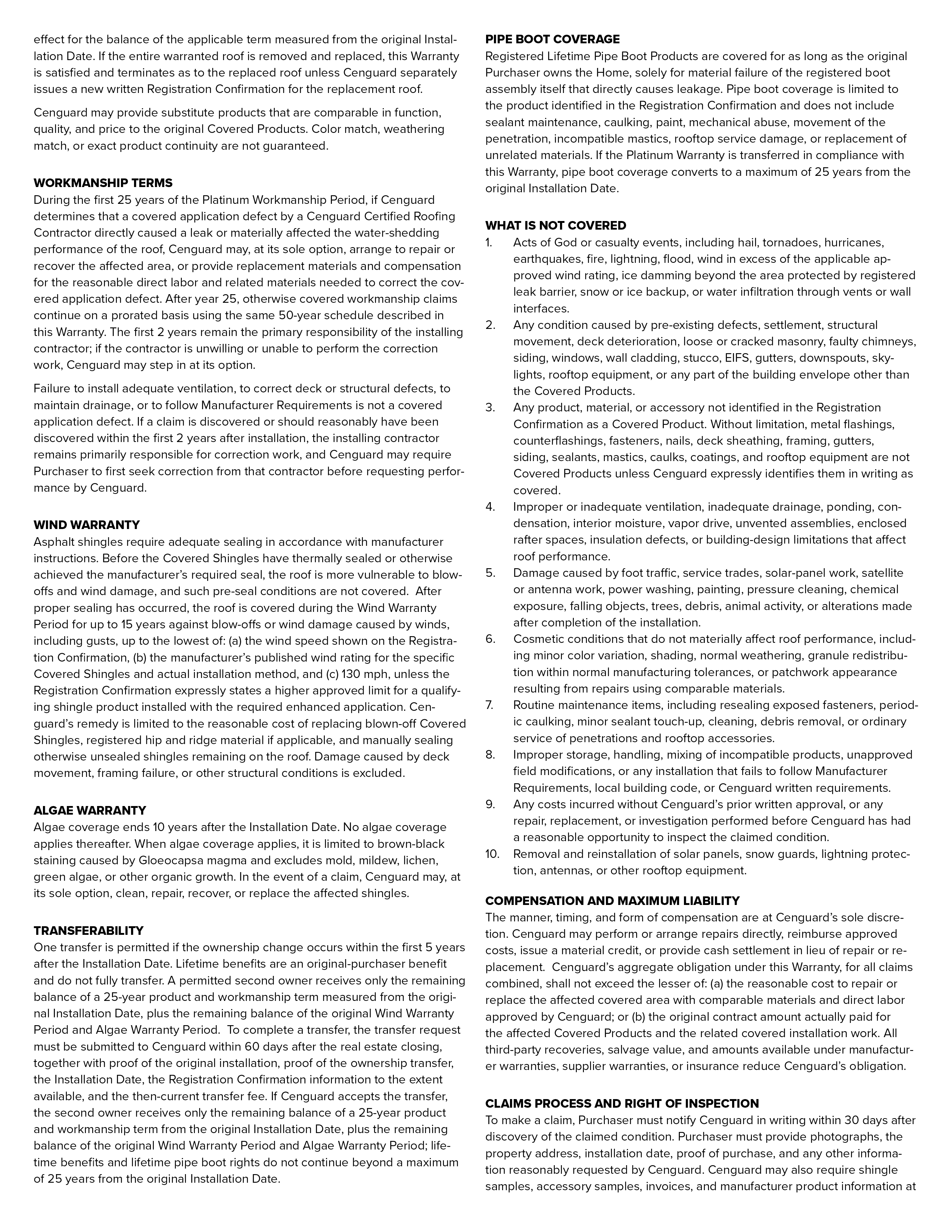 Cenguard Platinum Warranty