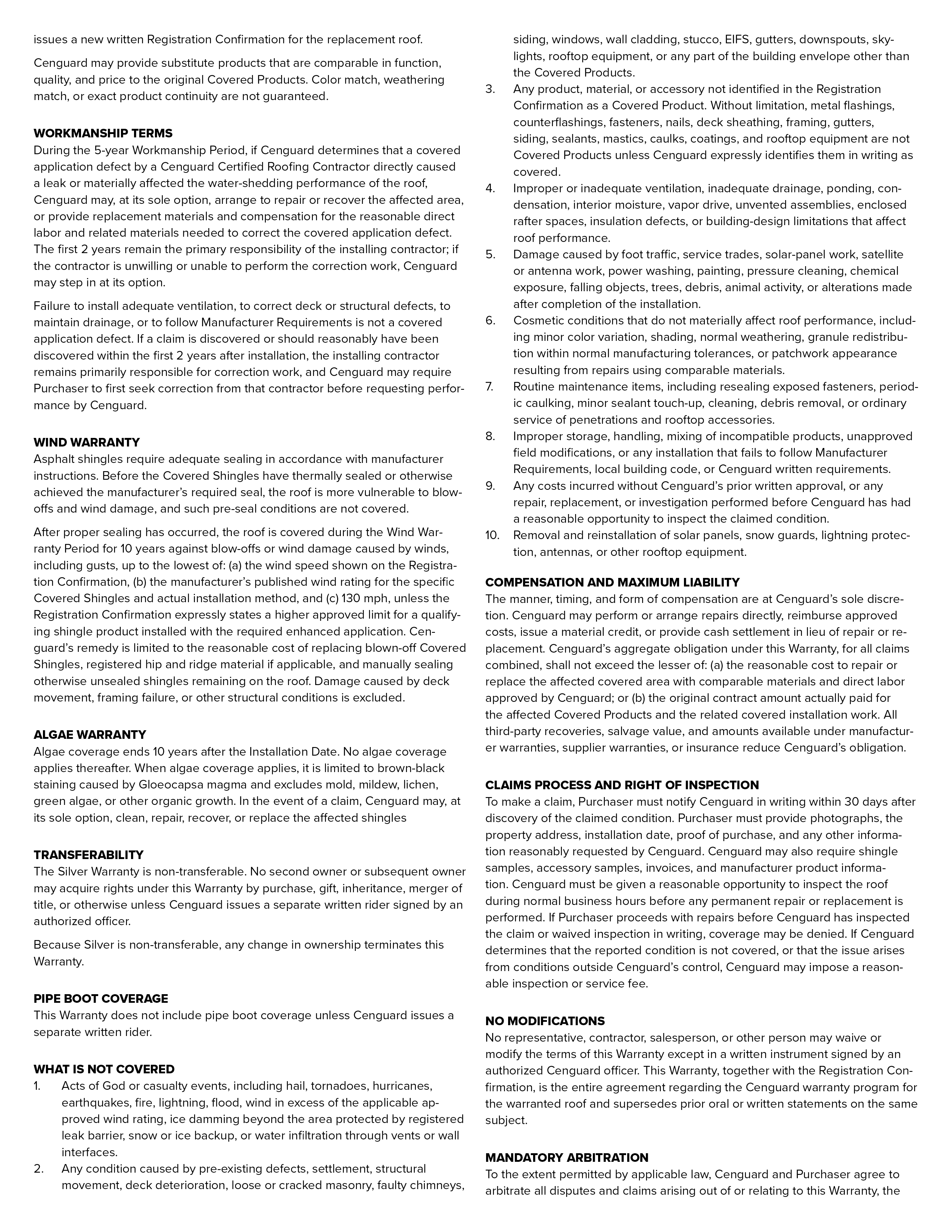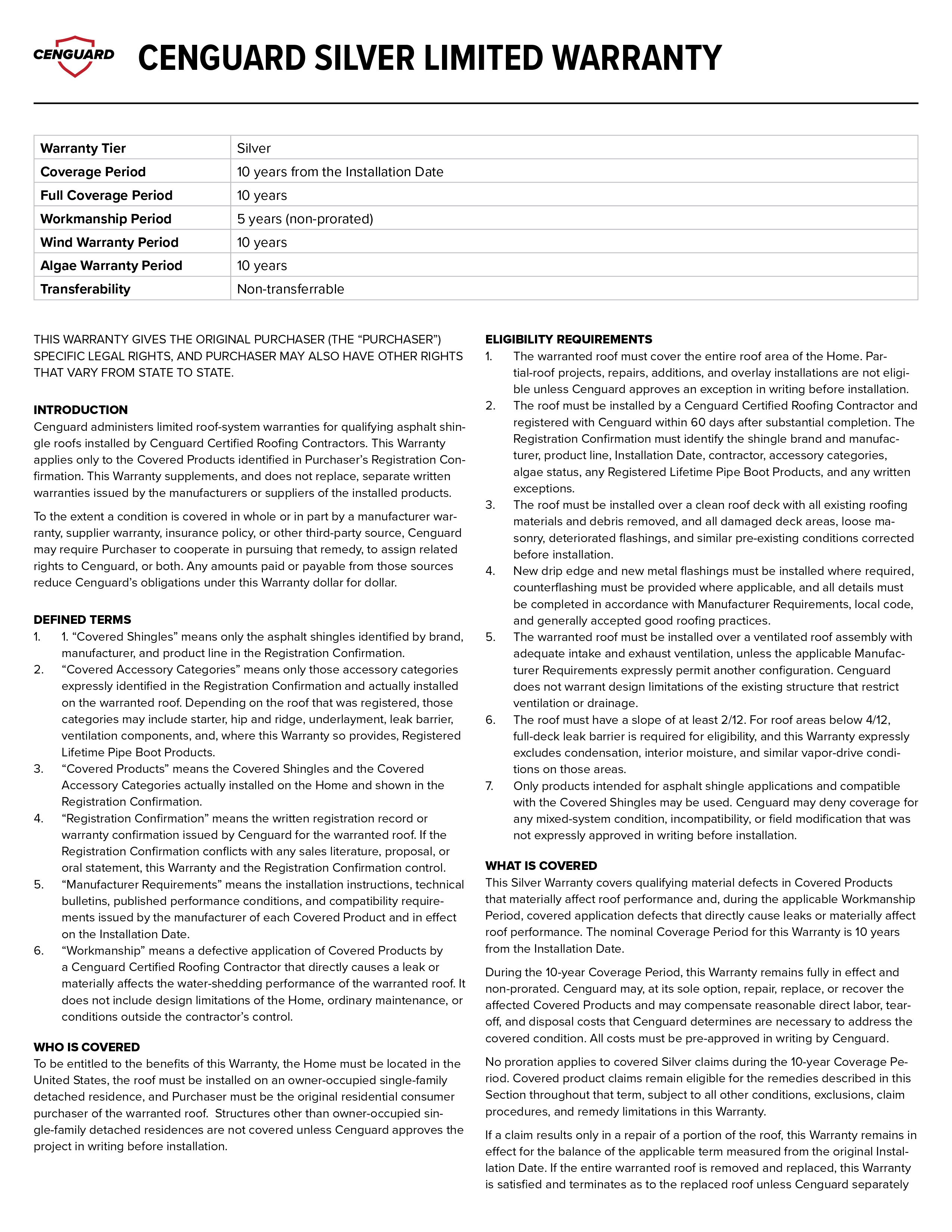 Cenguard Silver Warranty
